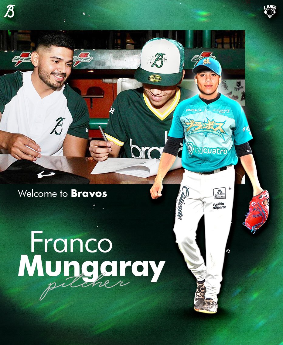 León, Guanajuato, 24 de diciembre.- La directiva de los Bravos de León anunciaron la firma del joven pitcher sonorense Franco Mungaray, quién se une a las filas leonesas con la meta de debutar en la liga mexicana o en algún equipo ligamayorista.