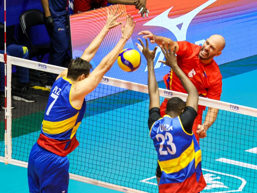 León, Guanajuato, 30 de agosto. – Luego de cinco sets, la selección de Venezuela se convirtió en el primer finalista de la Copa Panamericana varonil de voleibol tras imponerse a Colombia con parciales de 25-22,28-26,19-25, 15-25 y 15-12, por lo que ahora está a la espera del ganador del enfrentamiento de México y Canadá.