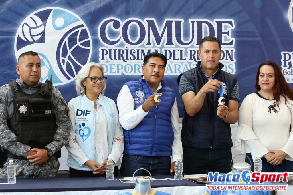 Purísima del Rincón, Guanajuato 6 de septiembre.- Roberto García Urbano, alcalde de Purísima del Rincón y Juan Pablo Verdín Sánchez, director de COMUDE Purísima, presentaron la décima edición de la carrera nocturna que se realizará el próximo 13 de septiembre en Purísima del Rincón.