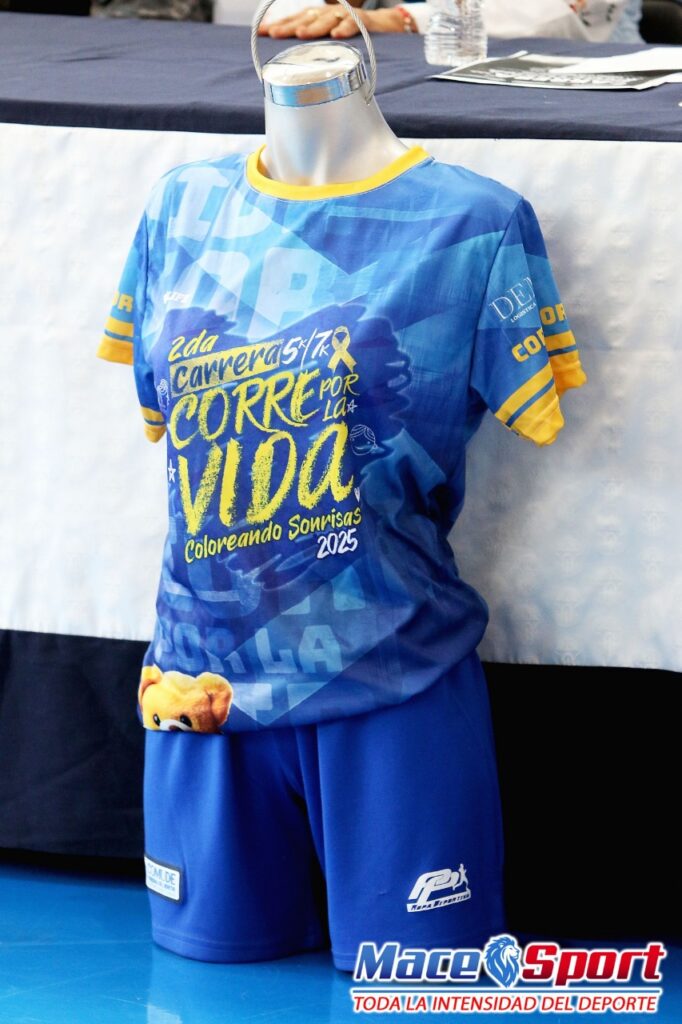 Así mismo se presentó la playera y la medalla que portarán los deportistas en la carrera, la playera es totalmente en color azul con mangas en amarillo, mismo color de las letras que conmemoran el décimo aniversario.