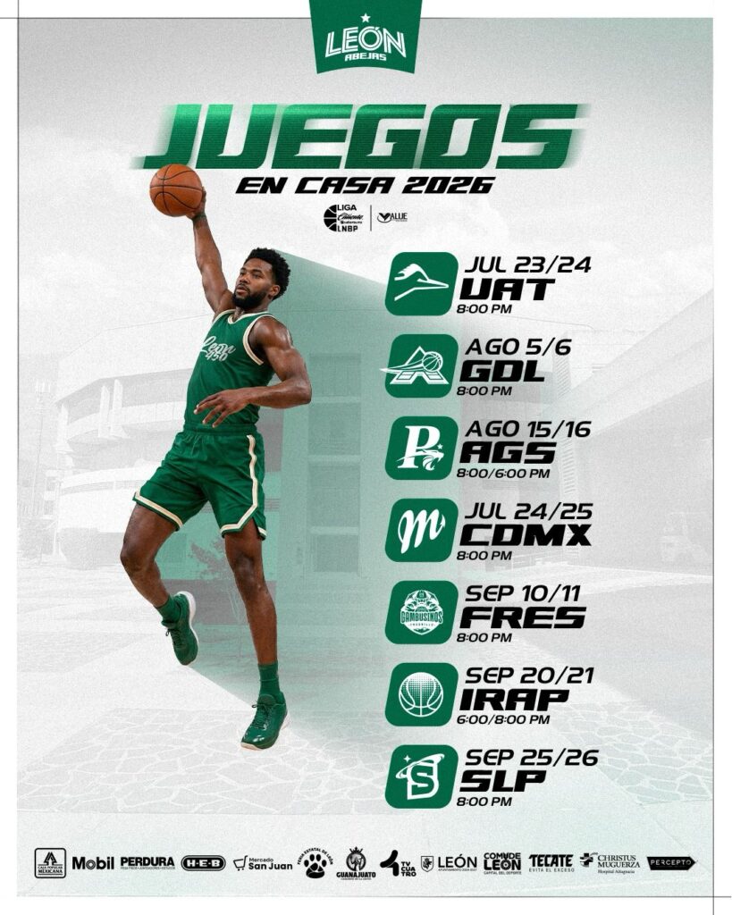León, Guanajuato, 2 de abril. – Se dio a conocer el calendario de Abejas en la LNBP varonil, siendo Correcaminos contra quién debutará el próximo jueves 23 de julio de esta temporada 2026.